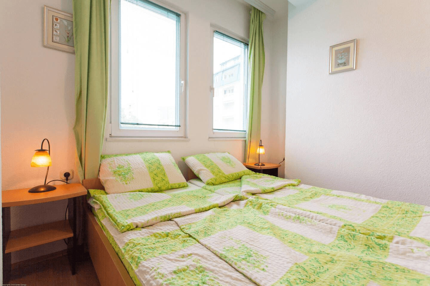 A cozy bedroom with a comfortable double bed
